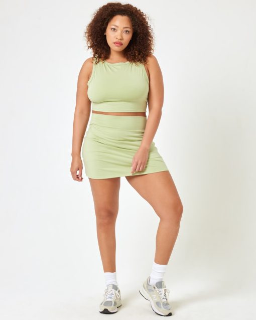Stretchy, flattering and super comfortable, the Nolan Top is our new stand-out piece. Thick straps provide comfort and support and a cropped silhouette keeps things interesting. Pair it with the matching skort to make it a set. Scoop one up in our classic black or gorgeous celery green.Boat Neck Tank Top Crop Top Size XS-XL 48%Cotton/47%Modal/5%Spandex Style # ANOLTP24
