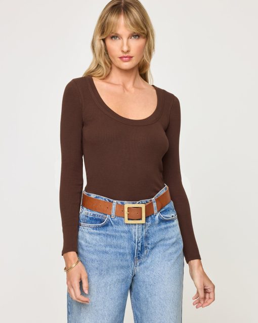 Our best selling micro rib has arrived in a fresh new style. Meet the Ashlyn Long Sleeve. This cropped cutie has a rounded neckline and close-fitting silhouette. Pair with your fave denim for an effortless everyday look. Long sleeve Micro rib Wide Scoop Neck Size XS-XL 95% Viscose 5% Elastane Style # ASHTP25