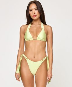 Ok, we all love a triangle top and we took it and made your favorite even better. The Brielle Bikini Top is an elongated triangle with thicker straps and metal D rings for some added sass. It ties at the neck and back and it’s now here in our whimsical mermaid-inspired shine fabric. Multiple Ways To Wear Elongated Triangle Top Halter Tie At Neck Tie At Back Metal D Rings Shine Fabric Size XS-XL, D, DD 80% Nylon/ 20% Spandex Style # LSBRT24