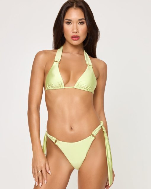 Ok, we all love a triangle top and we took it and made your favorite even better. The Brielle Bikini Top is an elongated triangle with thicker straps and metal D rings for some added sass. It ties at the neck and back and it’s now here in our whimsical mermaid-inspired shine fabric. Multiple Ways To Wear Elongated Triangle Top Halter Tie At Neck Tie At Back Metal D Rings Shine Fabric Size XS-XL, D, DD 80% Nylon/ 20% Spandex Style # LSBRT24