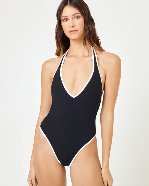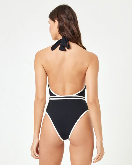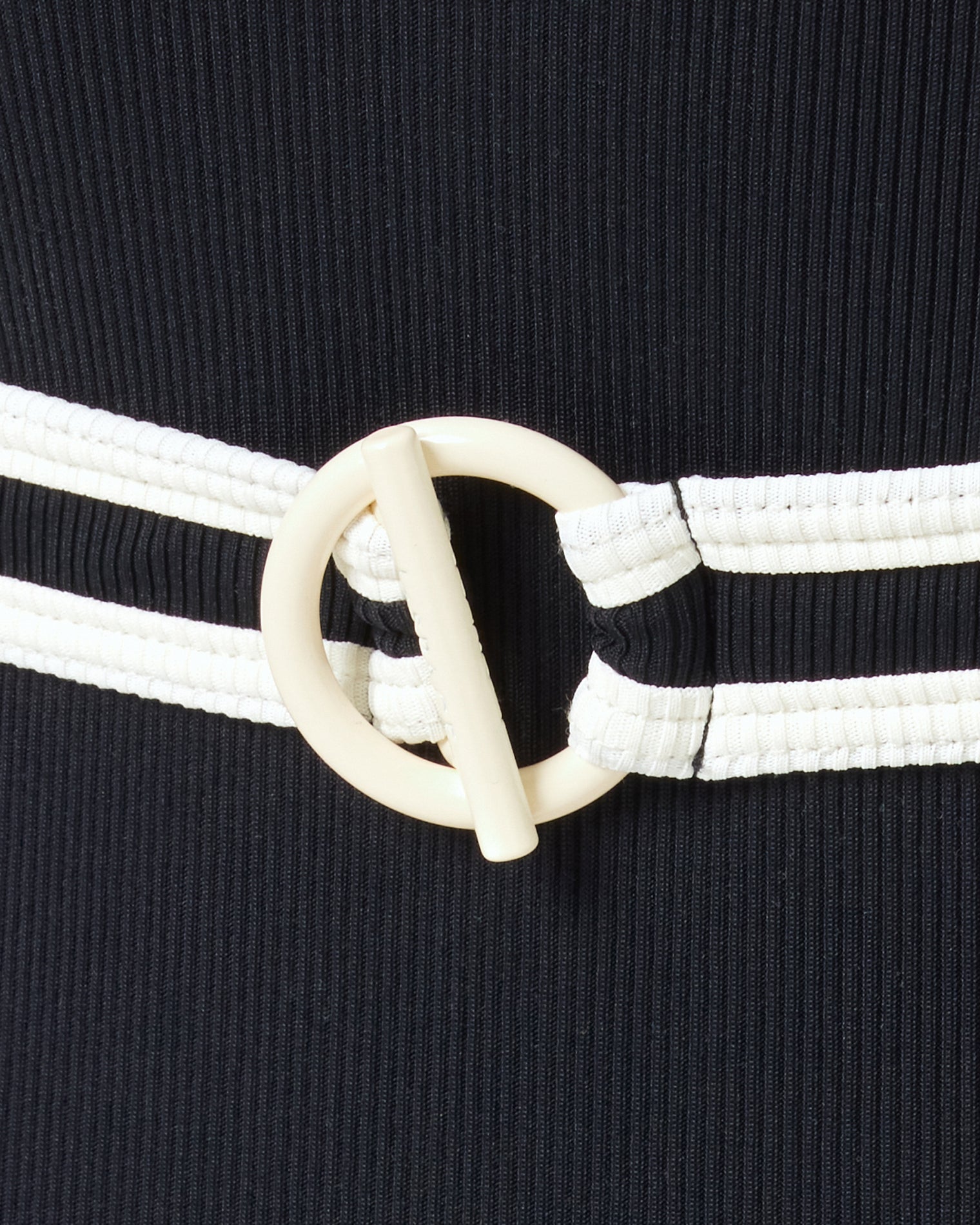 From boating to a beach day, the Caicos One Piece is bringing the chic. With a removable belt featuring a toggle/ring detail, adjustable ties that lead into a deep-v neckline and classic coverage this one looks perfect paired with a sarong and bare feet. Deep V Removable Belt Tie At Neck Classic Coverage Toggle/Ring Trim At Belt Size XS-XL 92% Nylon | 8% Spandex Style # RHCOMC25