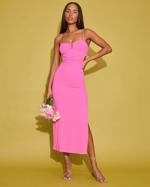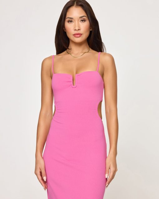 You know and love our ribbed dresses, and the Cameron is our latest iteration that’s going to give you all the heart eyes. The wire u-ring at the bust is the standout, and we took it a step further with dual waist cut-outs and super skinny spaghetti straps. Midi Knit Dress Love Forever Rib Spaghetti Strap Adjustable Straps U Wire Bustline Size XS-XL 90% Viscose 10% Elastane Style #CMRDR24