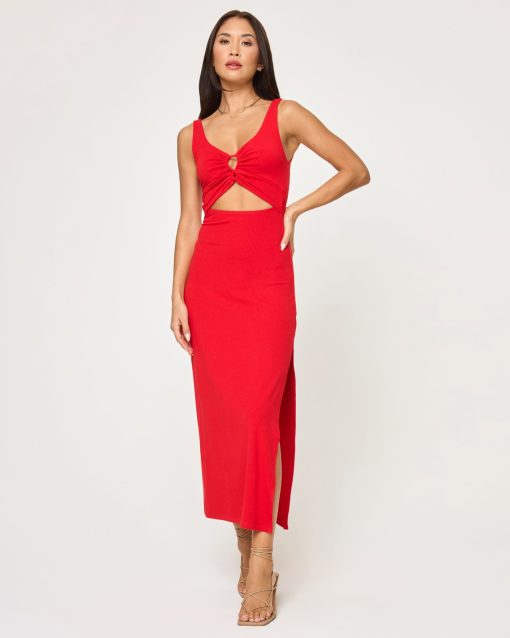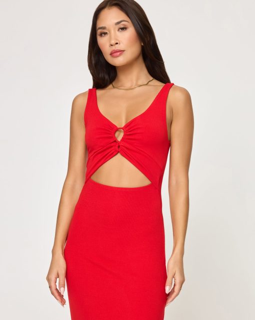 There’s nothing like a fitted ribbed dress to elevate any occasion. The Camille Dress is infused with fun details like loop cutouts, a scoop neck, side slit and thick straps. Find her in three neutral hues. Fitted Ankle Length Skirt Scoop Neckline Thick Straps Loop Cutout Detail At Waist Love Forever Rib Size XS-XL 92% Viscose 8% Elastane Style # CMLDR24