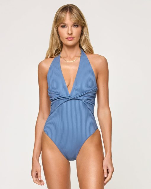 Eco Chic is bringing the newness with the brand new Coast to Coast One Piece. Made from our sustainable wide-well ribbed fabric, this onesie gives classic coverage, a neck tie with deep-v and twist front detail. The best part? She can transform to a body suit and take you from the pool to a night out by pairing it with a skirt, short or your fave jeans.one piece classic coverage tie around neck deep V twist front eco ocean rib 85% Recycled Polyamide 15% Spandex