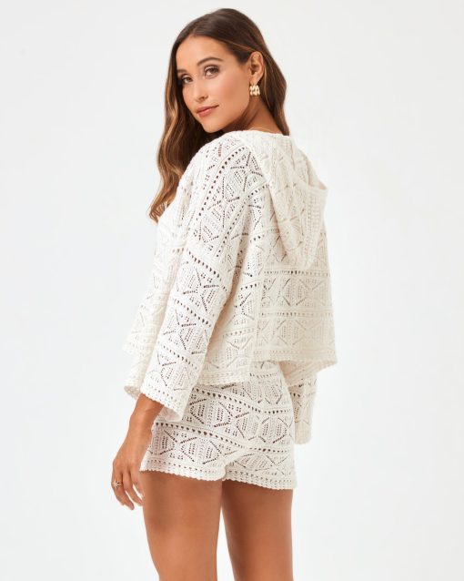 With a high-waist + crochet fabric, the Diamond Eyes Shorts are an effortless pick for any season. Wear these with the coordinating sweater or throw them over a bikini for a beach day. Short High Waist Ribbed Waistband Diamond Eye Crochet Fabric 100% Cotton Size XS-XL Like all delicates, shape, color and fit are best preserved if hand washed in cold water. Lay flat to dry. Style # DEYSH24