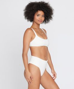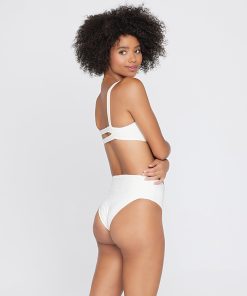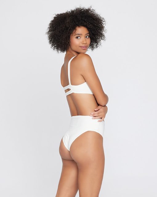 Part of our “Eco Chic Off the Grid” collection, the fiber in this pullover bikini top is made from 100% recycled materials. Using REPREVE® – A high quality performance fiber. Featuring ribbed fabric and a comfy double banded back, this is style you can feel good about. Pull-over bralette-style top Cut-out back detailing Size XS-XL, D Cup, DD Cup *XL not available in Cream 82% recycled poly, 18% spandex This product contains REPREVE® polyester made from recycled plastic bottles. Helping conserve energy and natural resources. And, gives you another great reason to recycle. Made in the USA Like all delicates, shape, color and fit are best preserved if hand washed in cold water. Lay flat to dry.
