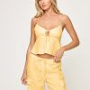 Meet the June Top, a chic and playful addition to your closet. This one-shoulder design brings a fresh twist with its unique handkerchief hem, adding movement and flair to any outfit. The functional buttons down the side offer a stylish touch and a customizable fit, while the cropped length and yarn-dye stripes make it perfect for pairing with high-waisted shorts, skirts or the matching pants.One shoulder Hanker chief top Buttons down side Cropped Yarn dye stripe 54% Viscose 33% Cotton 13%Linen
