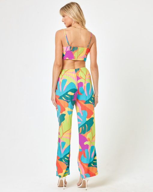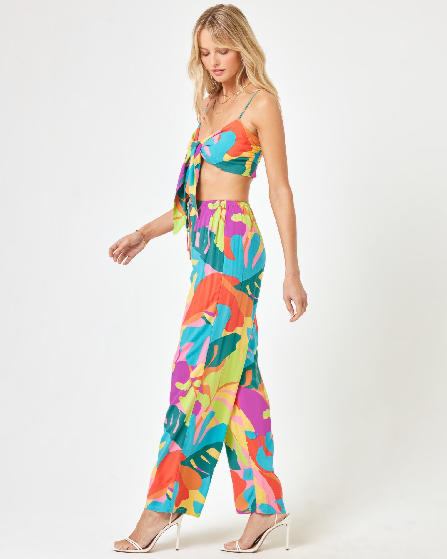 These easy, breezy pants just scream “take me on a vacay!” They have a tie waist, bold tropical print and a nice wide leg. Make it a matching set with the coordinating Tanya Top.