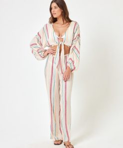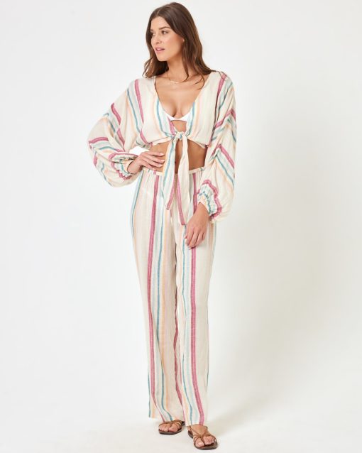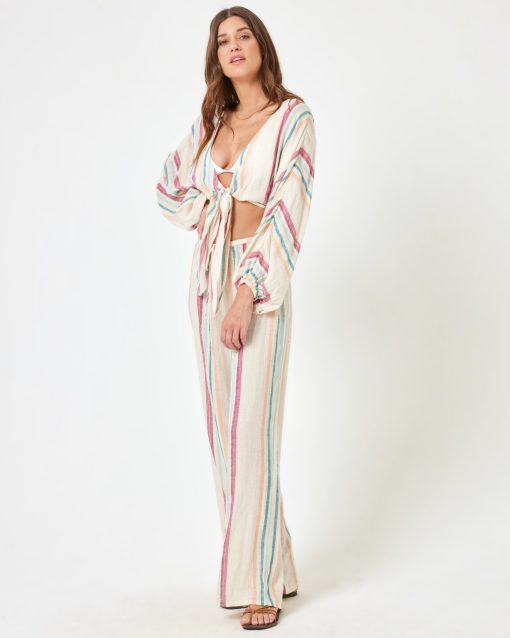 Looking for pants that are comfortable and stylish? We gotchu. The Lily pant in our yarn-dye stripe fabric have the perfect amount of shimmer. They have a mid-rise, wide leg and tie at the waist so you can adjust to you
