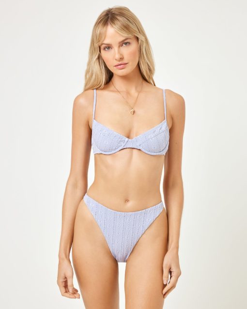 Life’s better in a bikini and this couldn’t be more true than when it comes to the Missy Top. An underwire silhouette & demi cup add some allure. Pair this with any of the coordinating bikini bottoms for a beach-ready look. Be sure to add it to your swim stash in our new textured eyelet print – take your pick from two colors! Underwire Top Demi Cup Hook At Back Adjustable Straps Botanica Eyelet Size XS-XL 94% Nylon 6% Spandex Style # BEMIT25