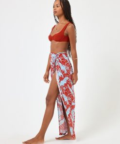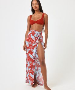 The classic sarong gets an upgrade with the Mia Cover-Up. Easy to wear and undeniably fun, this cover-up features an elastic waist and mock knotting detail.Light weight cover-up Elastic on back waist Size XS-XL Fabric Content: 100% viscose Like all delicates, shape, color and fit are best preserved if hand washed in cold water. Lay flat to dry.