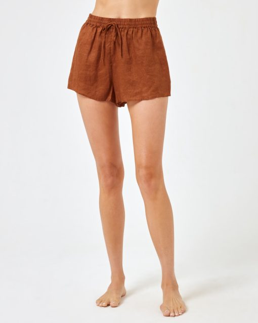 These linen pull-on shorts are the epitome of classic style. An adjustable tie waist and pockets are just a few of the reasons we keep reaching for these closet staples.This style runs small, we recommend sizing up. Linen Pull on Shorts Adjustable Tie Waist Side Pockets 100% Linen Style # RIOSH23