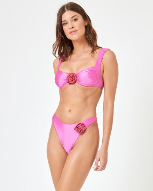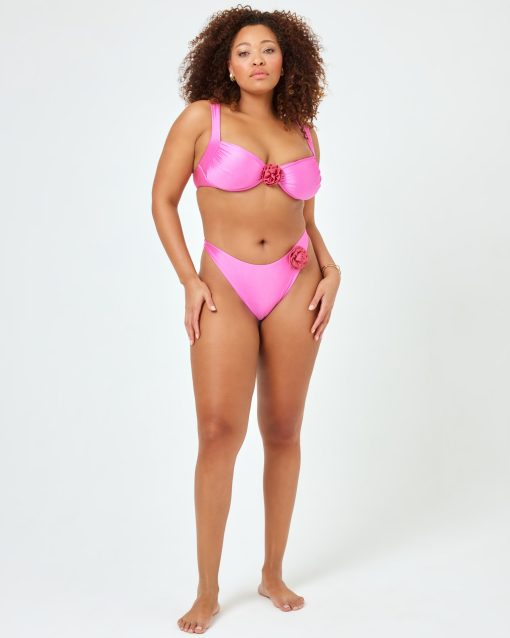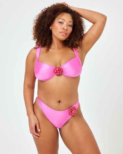 The Stella Bikini Top is nothing short of a stand-out piece. This underwire bralette features extra-thick straps + hooks at the back. We gave this bestseller an upgrade with a rose applique and stunning shine fabric. Underwire Bralette Thick strap Hooks at back Rose applique Shine fabric 80% Nylon / 20% Spandex Like all delicates, shape, color and fit are best preserved if hand washed in cold water. Lay flat to dry. Style # SHSIT24