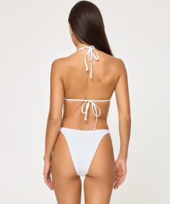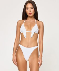 Triangle top Tie around neck Tie around back Fringe at cups Size XS-XL 82% Polyester | 18% Spandex Style # LSSIT25