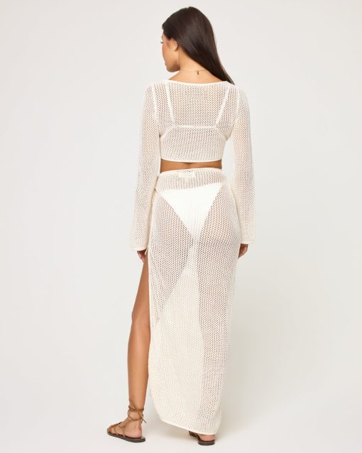 Get ready to show off those beautiful legs thanks to the ultra-elongated side slit of the Soliel Sarong. This ankle length skirt brings a punch of ocean-inspired color with an open-knit crochet fabric and sexy little side tie at the hip. Wear it with the coordinating Los Cabos Top for a matching set moment.Ankle length Tie at hip Coast is clear knit 100% Cotton