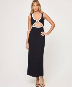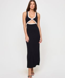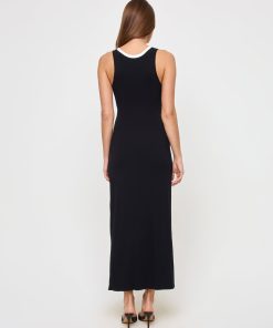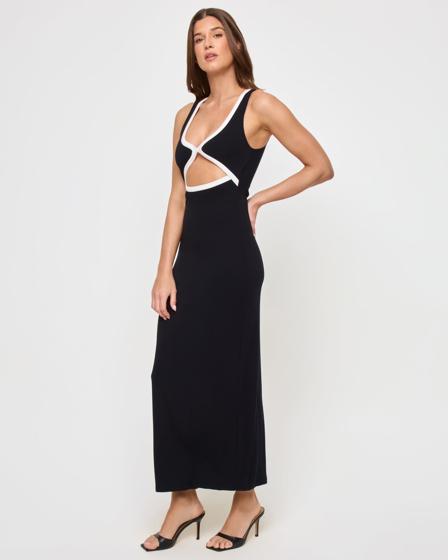 There’s something just oh so sexy about the Steph Dress. This hot midi is bringing the fire with perfectly-placed cutouts under the bust, plunging neckline, contrasting color blocking in black and cream, thick tank straps and our signature ribbed knit fabric that y’all are obsessed with. She’s the perfect pick for vacay, date night and anything in between.Tank straps Cutout under bust Contrast color blocking Ankle length Size XS-XL 90% Viscose 10% Elastane Style # STEDR25