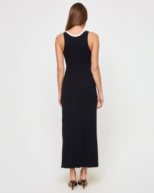 There’s something just oh so sexy about the Steph Dress. This hot midi is bringing the fire with perfectly-placed cutouts under the bust, plunging neckline, contrasting color blocking in black and cream, thick tank straps and our signature ribbed knit fabric that y’all are obsessed with. She’s the perfect pick for vacay, date night and anything in between.Tank straps Cutout under bust Contrast color blocking Ankle length Size XS-XL 90% Viscose 10% Elastane Style # STEDR25