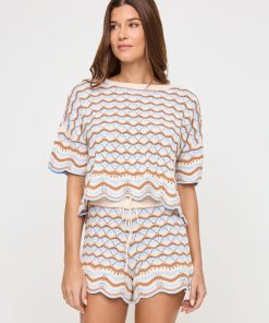 The Sun Chaser Shorts are an effortless pick that look perfect when paired with a bikini top or the matching crop top. The high waist, colorful crochet knit, scalloped hem and drawstring waist will have you reaching for these all the time. Scalloped HemDrawcord Through Waist XS-XL 100% Cotton