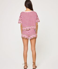 The design team thought of everything when creating the Sun Chaser Top. Scallop Trim? Check. Crochet knit? Check. Gorgeous colors? Check. Pair this cute crop with the matching shorts for a look that’s cute as a cover-up or resortwear. Crop Short sleeve Scalloped hem Shell yeah crochet 100% Cotton Style # SUNSW25