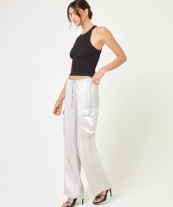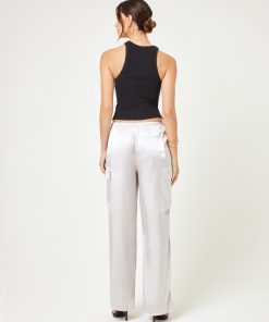 We love the cargo trend so much that we made our own! The Sundown Cargo Pants are showing up with style thanks to their mid rise, tie waist and generous wide leg. We didn’t skimp on the pockets either. Cargo Pant Pockets At Thigh Pocket on Butt Mid or High Rise Tie Waist Relaxed Leg Shine On Satin Size XS-XL 100% Viscose Style # SUNPA25