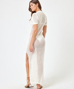 There’s something about sweater knit fabric that just screams luxury. The Sydney Cover-Up combines glamour and refinement with its midi length, collar, v-neck, crochet short sleeves and perfectly-placed leg slit. Midi Length V Neck Collared Crochet Short Sleeve Slit At Thigh Size XS-XL 53% Cotton, 47% Polyester Like all delicates, shape, color and fit are best preserved if hand washed in cold water. Lay flat to dry. Style # SYDCV24