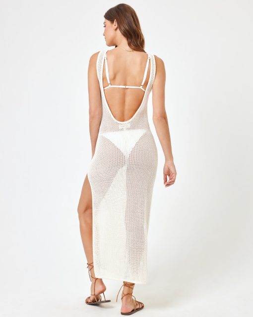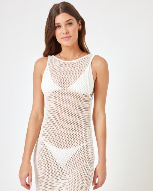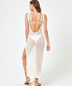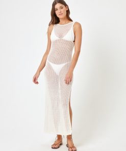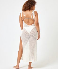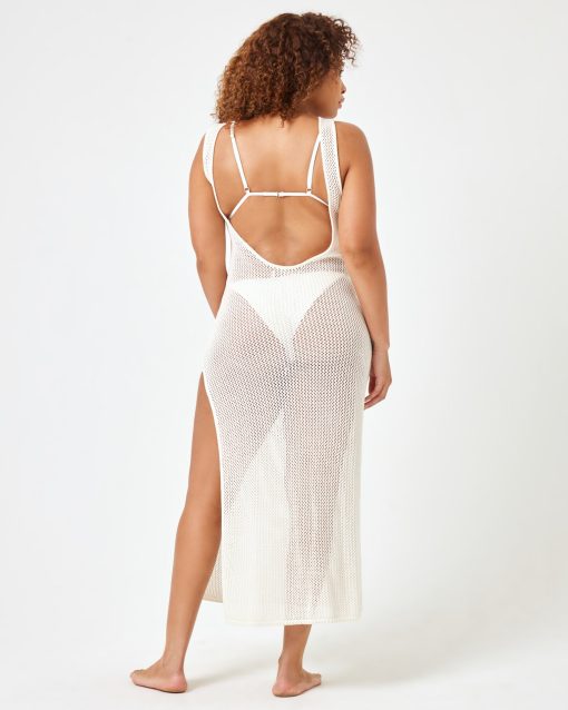 A cream colored crochet cover-up is a quintessential vacay staple. The Villa Nova is a midi length dress that features a boat neck, low back and leg slit. Wear it over a neutral bathing suit and you’re ready for a day by the sea. Midi Length Boat Neck Low Back Tank Straps Leg Slit Crochet Fabric Size XS-XL 100% Cotton Like all delicates, shape, color and fit are best preserved if hand washed in cold water. Lay flat to dry. Style # VILDR24 Model Measurements: Maitlynn, size S – Height 5’9, Bust 34″, Waist 24″, Hips 35″ Amber, size XL – Height 5’9, Bust 41″, Waist 32 1/2″, Hips 44″