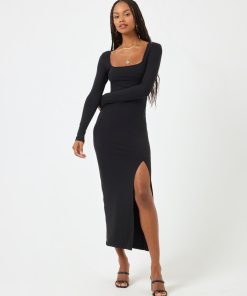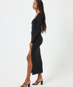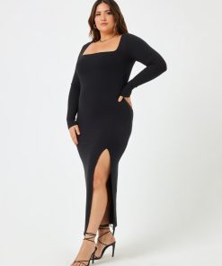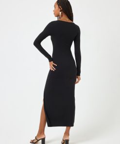 The Windsor dress is the perfect fit for your fall and winter plans. Its polished and refined long sleeves, square neck and leg slit make this dress easy to dress up or down depending on what fun events you have on your calendar. Available in festive emerald green or classic black. Long Sleeve Square Neckline Ankle Length Leg Slit Built In Bra Love Forever Rib Size XS-XL 90% Viscose 10% Elastane Like all delicates, shape, color and fit are best preserved if hand washed in cold water. Lay flat to dry. Style # WINDR24