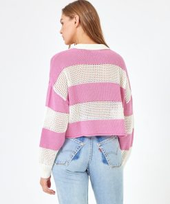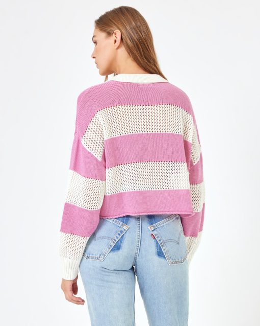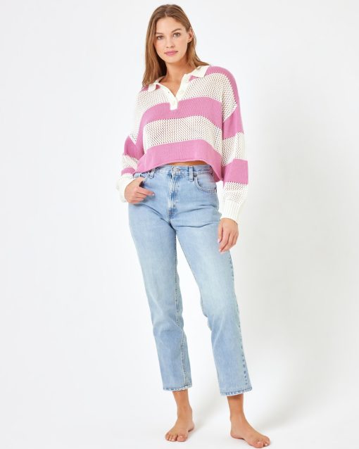The Rugby Sweater is as versatile as it gets. Throw it on over your bikini or pair it with pants for a pulled-together vibe. This crochet paneled pullover has a cute collar, 1/4 button down and ribbed cuffs at the sleeves. It looks neat paired with the Sundown Pant — also part of the LSPACE x Anthropologie collab. Crochet Paneled Pullover Collared 1/4 Button DowN Ribbed Cuffs At Sleeves Size XS-XL 100% Cotton Style # ARUGSW24A