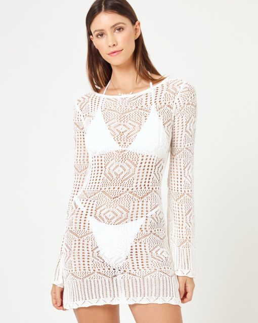 Feminine and flirty, the Arrow Cover-Up Dress works for a beach day or a special brunch. This mini dress has long bell sleeves, a low back and classy boat neckline. Add some lace-up sandals and you’re good to go. Long Sleeve Mini Dress Boat Neckline Low Back JVS Collaboration Size XS-XL 100% Rayon Like all delicates, shape, color and fit are best preserved if hand washed in cold water. Lay flat to dry. Style # ARRCV24